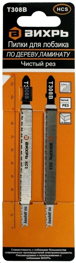 Пилки для лобзика Т308В по дереву,ламинату,чистый рез 116x90мм (2 шт) Вихрь