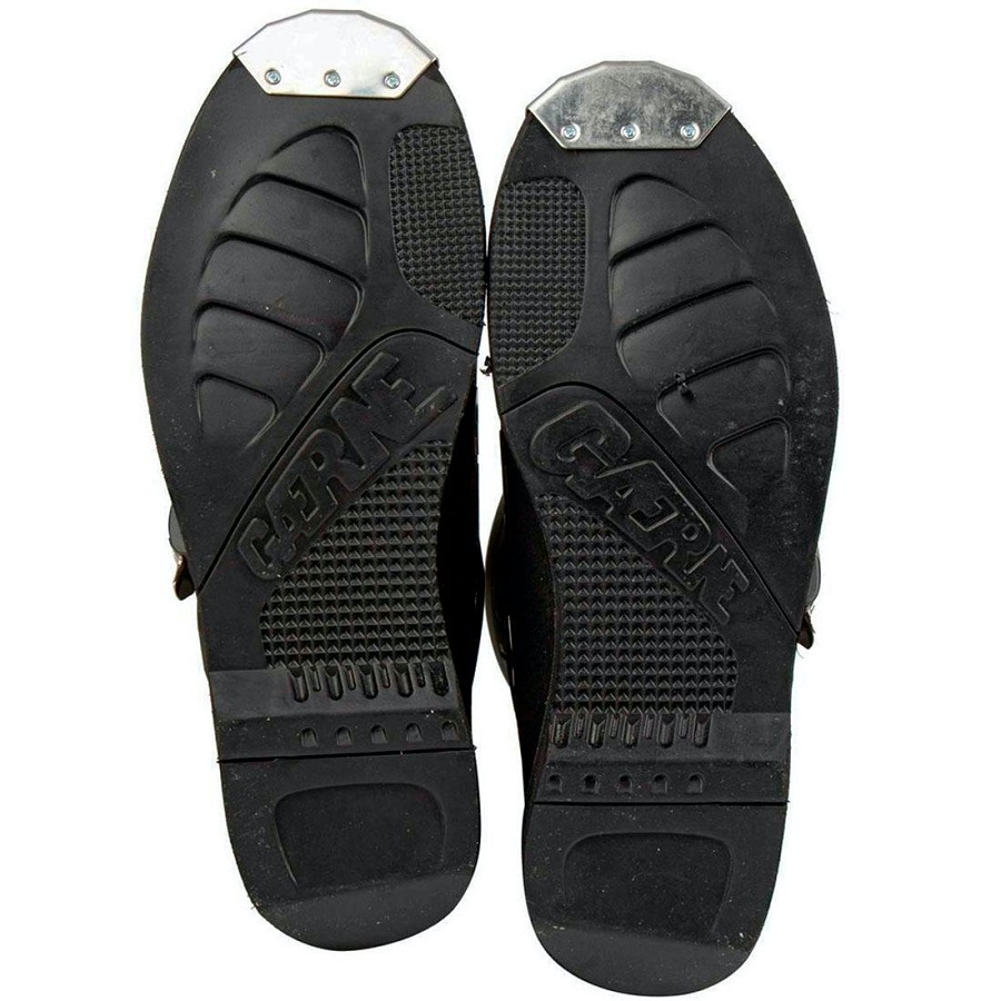 Защита голени из многослойного пластика, полиуретановая защита пальцев стопы, стальная накладка на носке, внутренний тепловой экран из резины, полиуретановая защита пятки, защита лодыжки Верх мотобот - натуральная кожа и микрофибра.