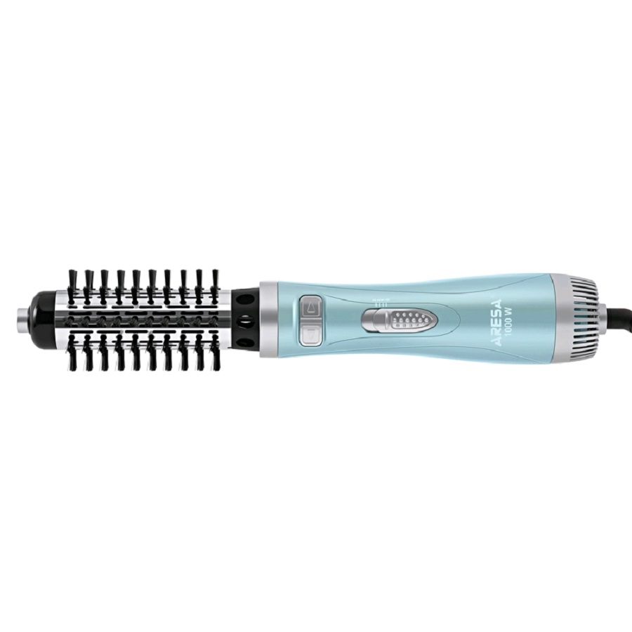 Мощность: 850-1000 Вт,2 режима нагрева,Функция холодного воздуха,Вращение шнура на 360°,Защита от перегрева,Петля для подвешивания,Автоматическое вращение расчески,Круглая щётка с мягкой щетиной (диаметр 50 мм),