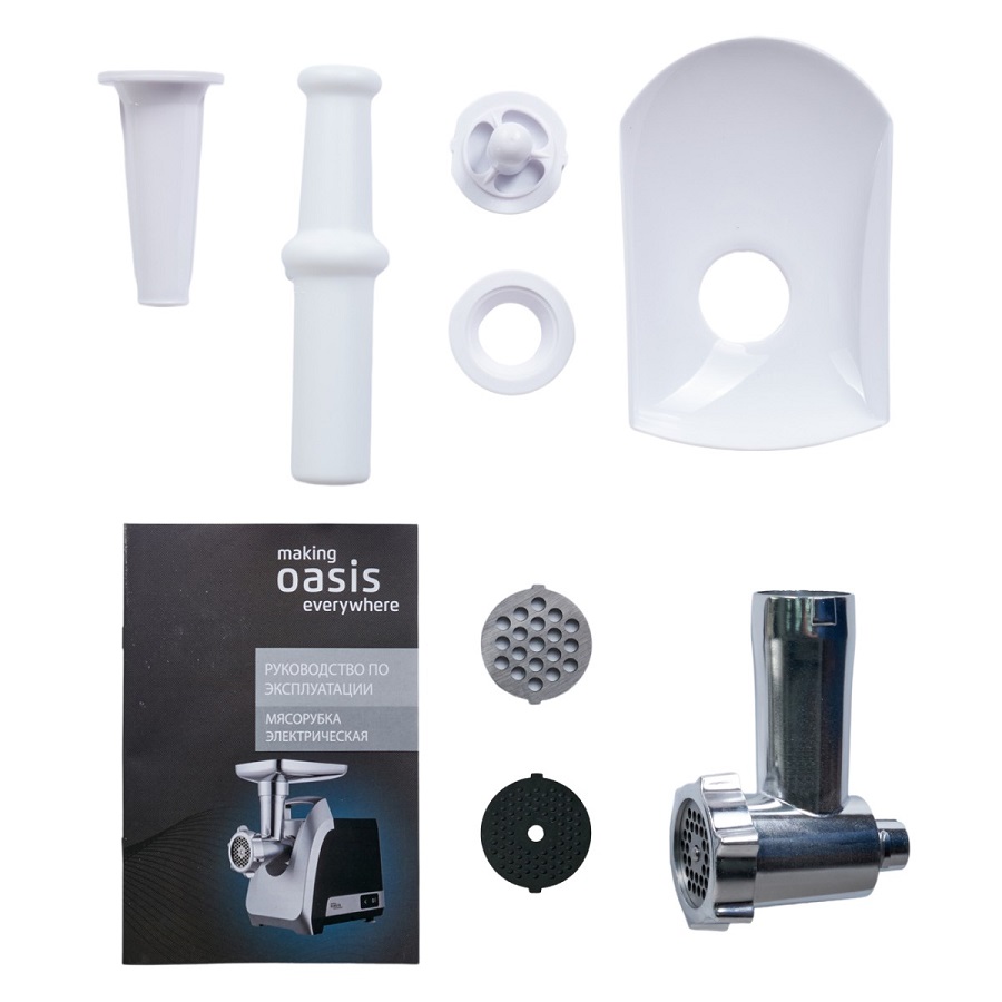 Макс. мощность: 1500 Вт Производительность: 1.8 кг/мин Система реверса: есть Материалы: пластик, пластик Насадки: для приготовления колбас, для кеббе