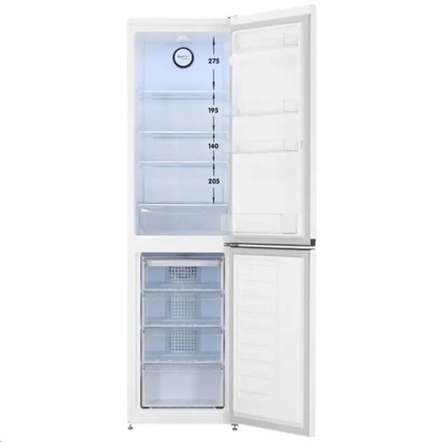 Количество камер: двухкамерный; Объем: общий 335 л; Морозильная камера: снизу, размораживание No Frost; Количество компрессоров: один; Класс энергопотребления: A; Размеры (ШхВхГ): 54 х 201 х 60 см; Цвет: белый
