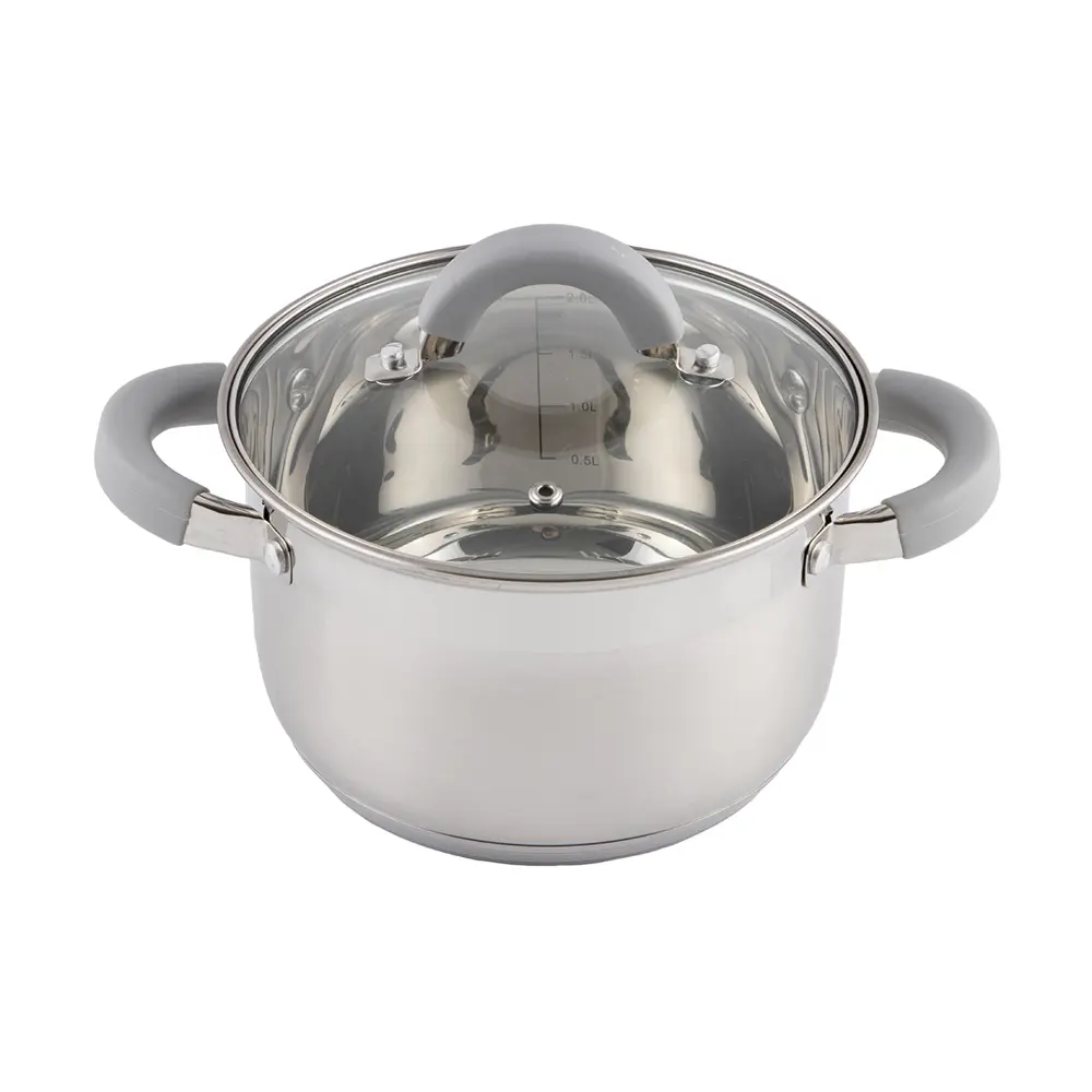 Кастрюля Felicità, объем 2,9 л, из нерж стали с крышкой из жаропрочного стекла, размер 1811,5 см Материал: нерж сталь, жаропрочное стекло, силикон, алюминий, нерж сталь, железо. Размер: 1811,5 см/Объем: 2,9 л. Толщина стенок - 0,5 мм, 5-слойное капсулированное дно/толщина дна 3,5 мм (0,5 мм нерж сталь+0,5 мм алюминий + 1 мм железо +0,5 мм алюминий + 0,5 мм сталь). Подходит для всех типов плит. Зеркальная полировка внутри. Отметки литража. Снаружи - смешанная полировка корпуса (матовая, в верхней части зеркальная). Крышка С-типа из жаропрочного стекла с отверстием для выпуска пара. Полые ручки из нерж стали с покрытием из силикона. Инд упаковка: термоусадка + цветной круглый вкладыш+ пакет. Диаметр дна: 14,5 см Диаметр крышки: 18,5 см