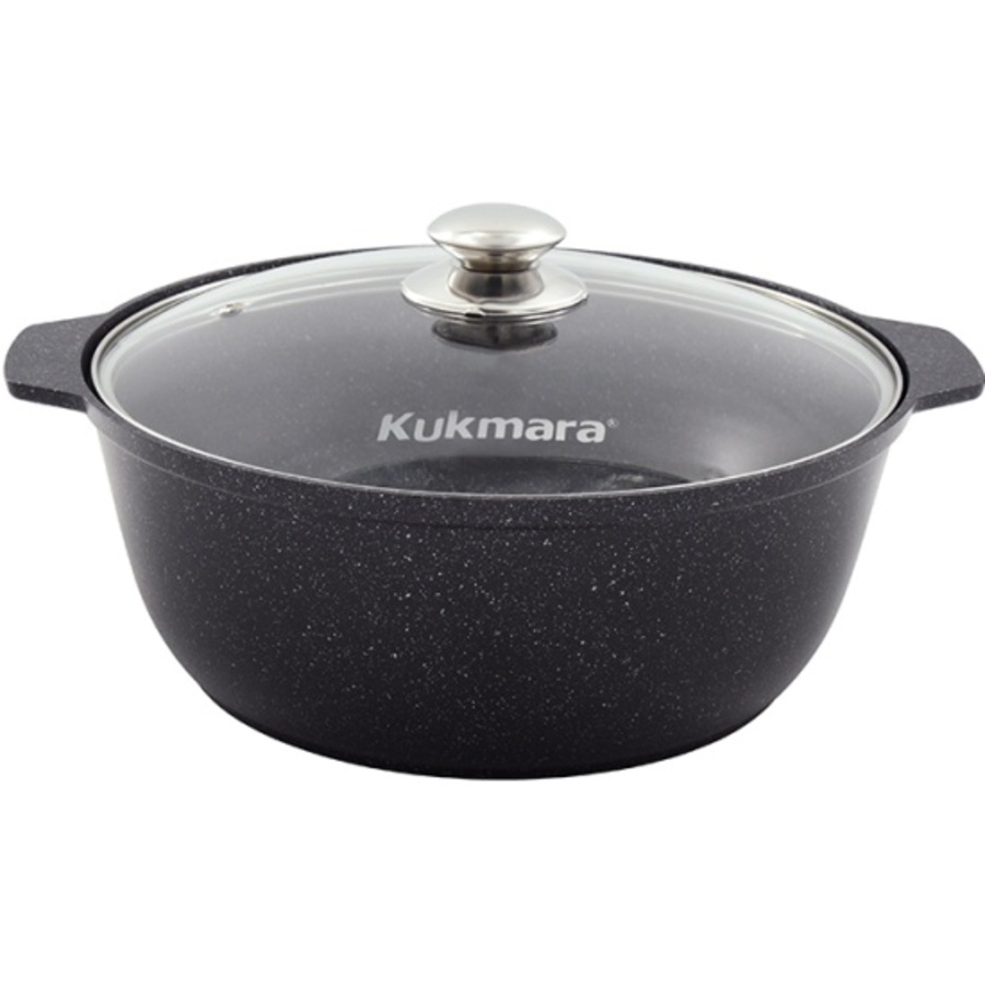 Кастрюля-жаровня имеет увеличенный диаметр посадочного места крышки (28 см), а также увеличенную полезную площадь внутреннего дна посуды, что позволяет варить, как в обычных кастрюлях, а также тушить, томить, делать предварительную обжарку.Цельнолитые ручки позволяют использовать кастрюлю в духовом шкафу. Эта посуда особенно подойдет тем, кто часто готовит такие блюда, как овощное рагу, аджапсандали, рататуй, чахохбили и даже плов.Функциональность посуды увеличивает стеклянная крышка из термостойкого стекла, благодаря которой можно наблюдать за приготовлением пищи и не снимать крышку каждый раз, теряя при этом изрядное количество тепла.Высококачественное антипригарное покрытие, близкое по стойкости к природному камню, не только устойчиво к царапинам, но и инертно к пищевым кислотам, поэтому в приготовленных продуктах не будет никакого постороннего вкуса.