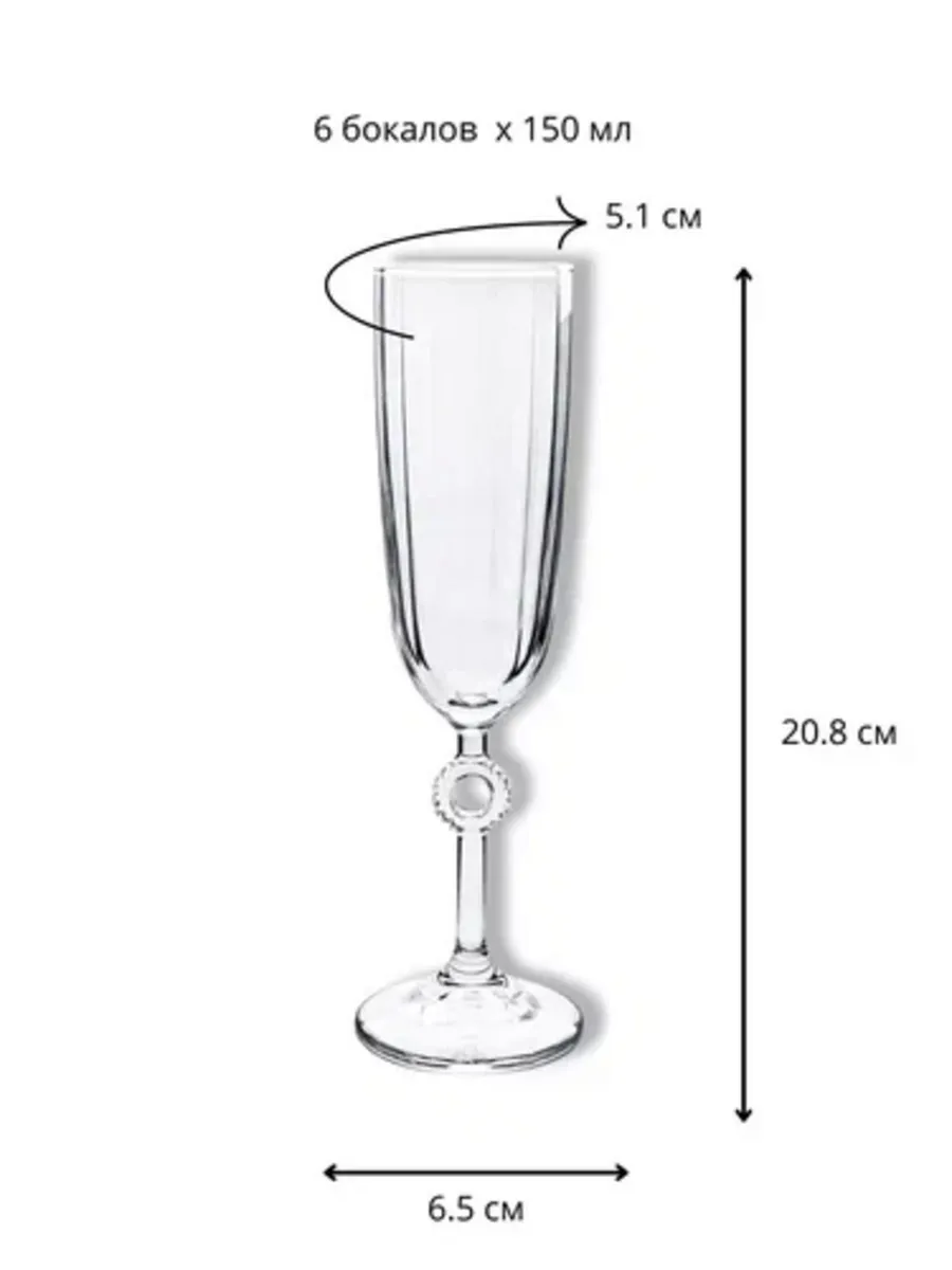 Изготовлены из натрий-кильций-силикатного стекла. Прямые линии направлены от верха к ножке бокала, что заставляет напиток красиво играть в лучах света. Нестандартный и необычный дизайн ножки. Купол бокала выполнен из тонкого стекла. Можно мыть в посудомоечной машине. Объем 150 мл. Высота 208 мм. Диаметр кромки 51 мм. Диаметр основания 65 мм.
