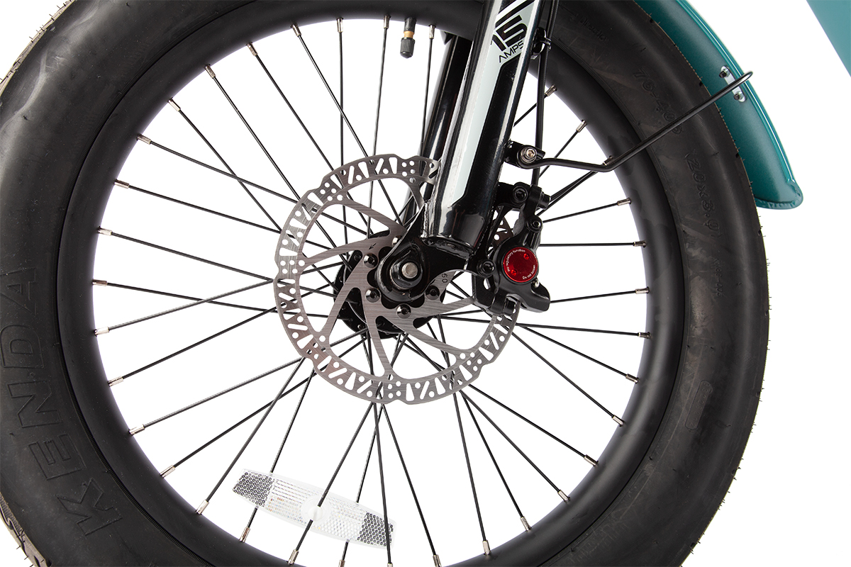 Широкие покрышки 20×3.0" обеспечивают устойчивость и уверенное сцепление на рыхлом покрытии. Повышенный кареточный узел уменьшает риск контакта с препятствиями на неровной дороге.
