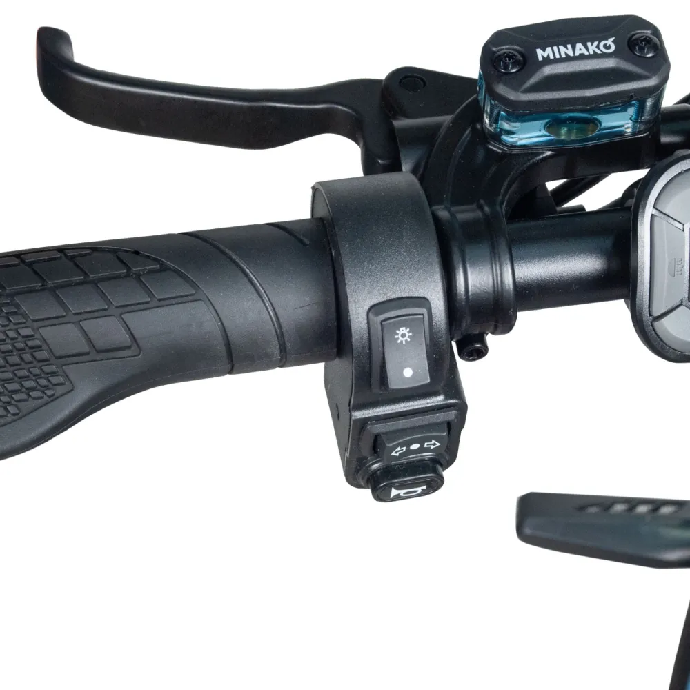 Для удобства управления предусмотрено 7 механических скоростей и 5 электрических режимов, что позволяет идеально подстроиться под любые дорожные условия — будь то городские улицы, дачные тропинки, или деревенские дорожки. Это значит, что Minako APEX одинаково хорошо подходит и для молодых, и для пожилых людей, кто хочет передвигаться с комфортом без излишних физических усилий.